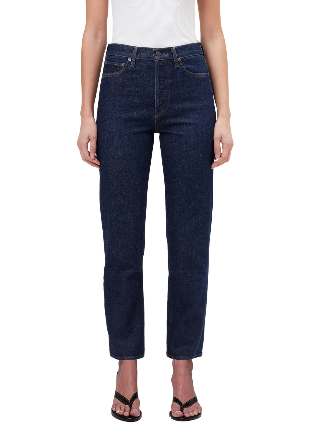 The 90’s Pinch Waist Crop in Radius offers a worn-in take on a classic silhouette with its washed-out medium black finish and subtle vintage detailing. Crafted from heavyweight comfort stretch denim, it combines structure with a soft, flexible feel for lasting wear. The high-rise, straight-leg fit and 27.5" cropped inseam make it a versatile addition to any wardrobe.