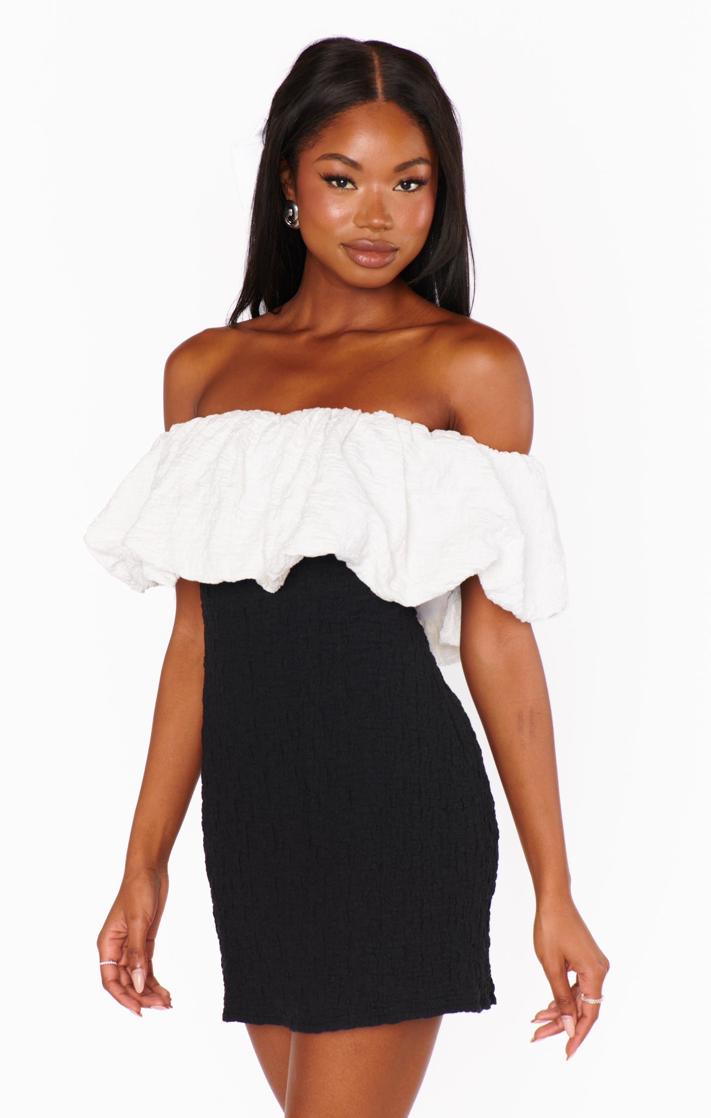 Feel confident and gorgeous in this off-the-shoulder, fitted, textured stretchy mini dress that is both sexy and classy. Perfect for your next girl's night out or date night, this dress is guaranteed to get you noticed!