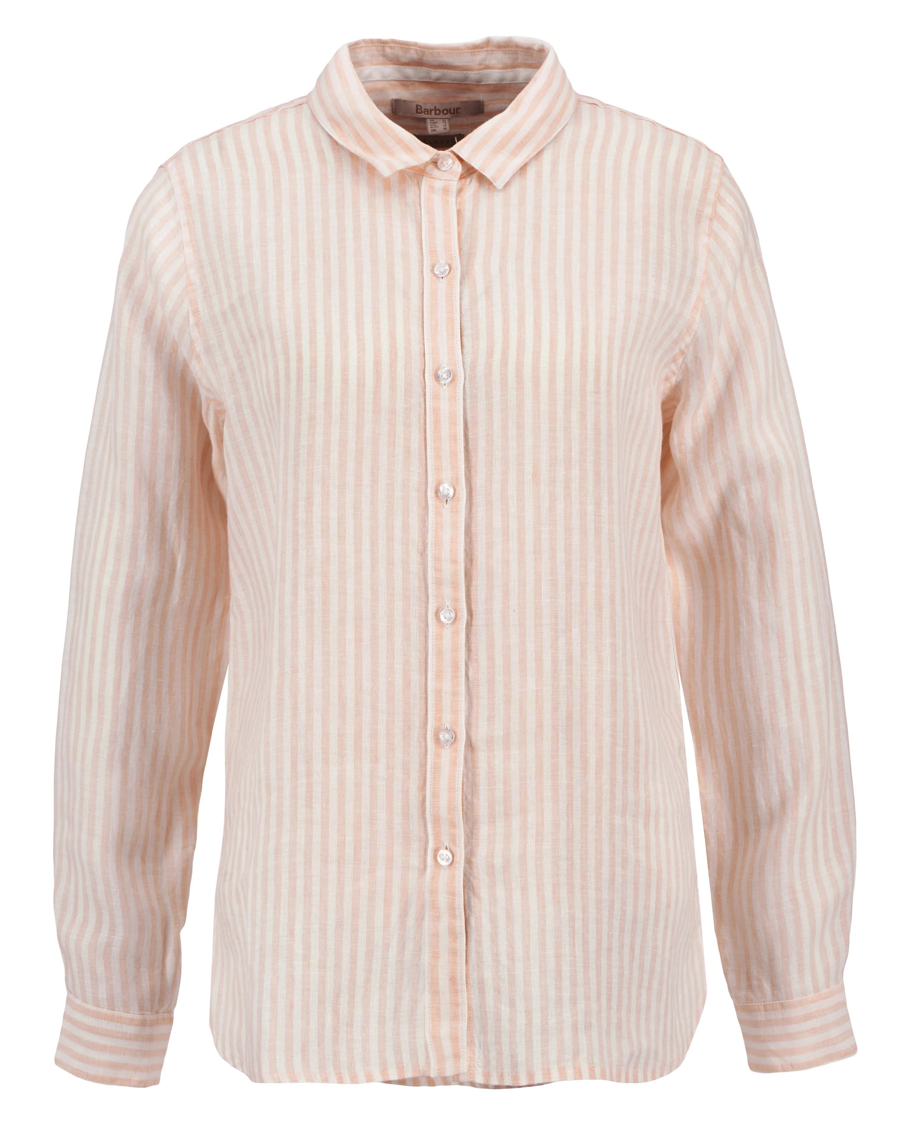 An essential layer for warmer days, the Barbour Marine shirt is crafted from pure linen for a luxurious feel and natural breathability. Cut to a relaxed fit with deep side seams for easy layering, the shirt is decorated throughout with a fine striped pattern in pink for effortless coordination with our seasonal collections. A small metal Barbour logo at the back of the neck completes the look.