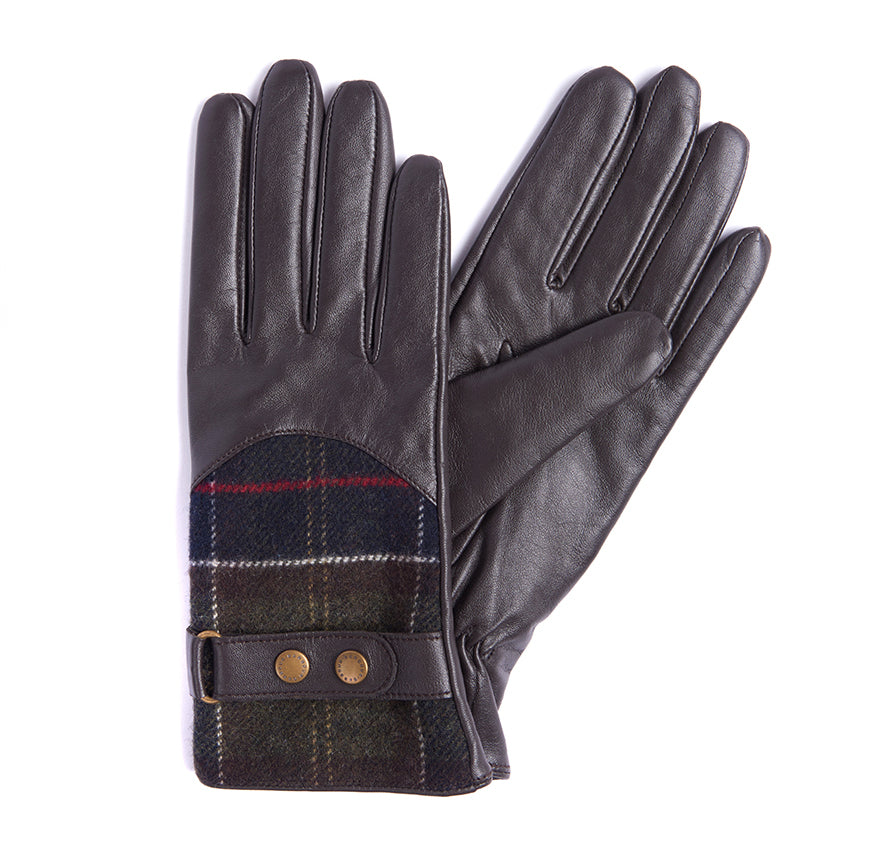 The Dee Tartan Glove is an elegant style featuring a lambskin leather outer and a wool trim in Barbour’s signature Classic Tartan. Finished with a leather strap that fastens with a neat Barbour-branded stud.