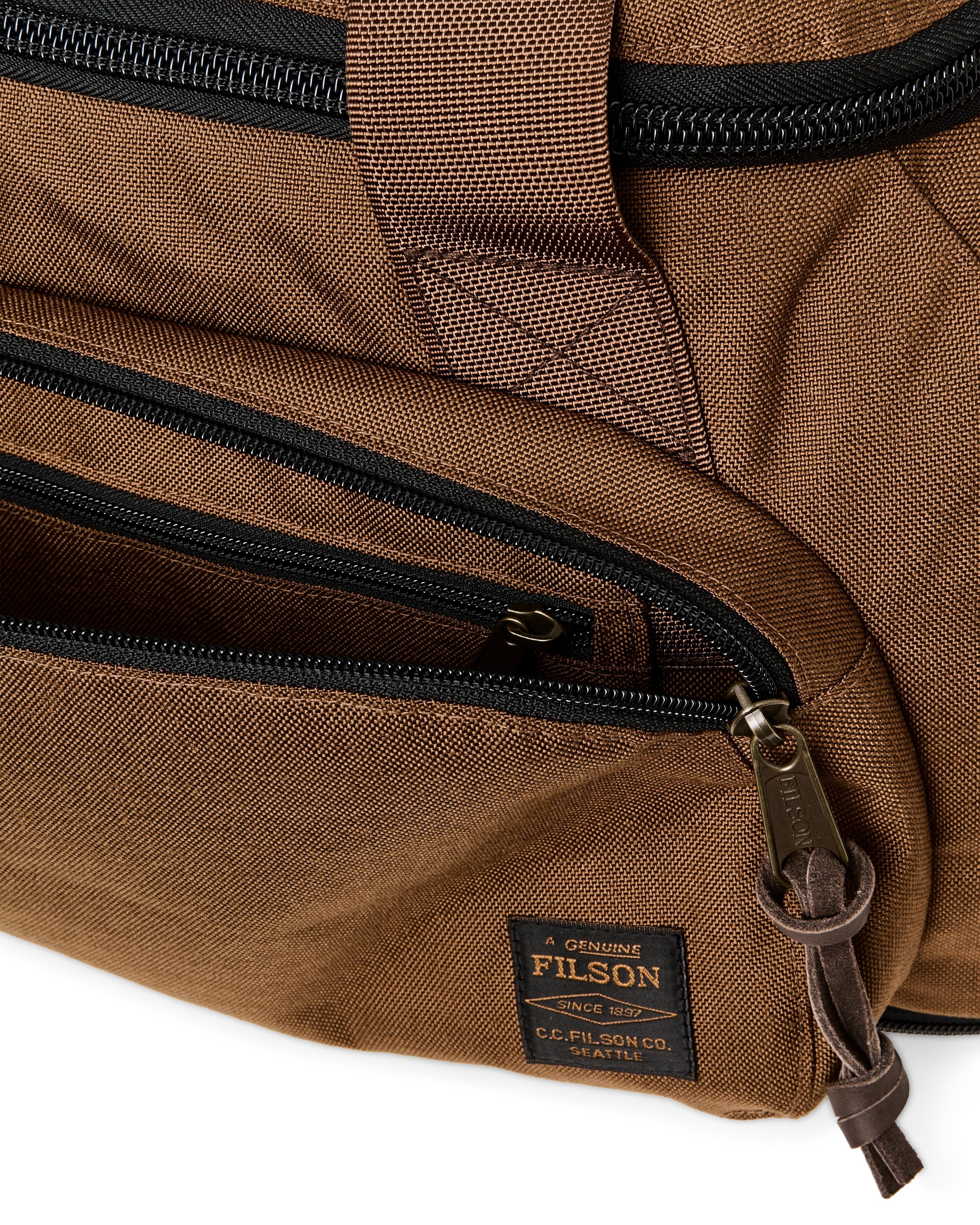 An all-purpose Cordura® nylon duffle that can be carried like a backpack. Panel-opening top zipper for visibility and easy access to contents. Back panel pocket secures backpack straps when not in use. Exterior zippered pocket and detachable shoulder strap.