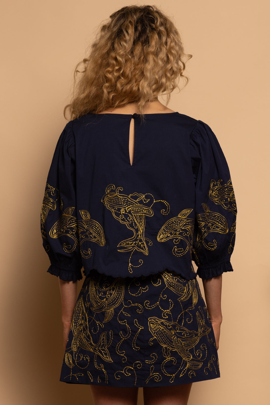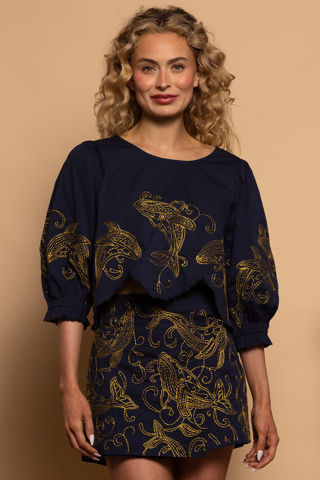 The Georgie Top features a charming scalloped bottom and playful embroidered whales, perfect for adding a touch of whimsy to any outfit. With its short sleeves and coordinating matching skirt, this set creates a fun and fresh look that’s easy to love. Ideal for sunny days and joyful adventures.