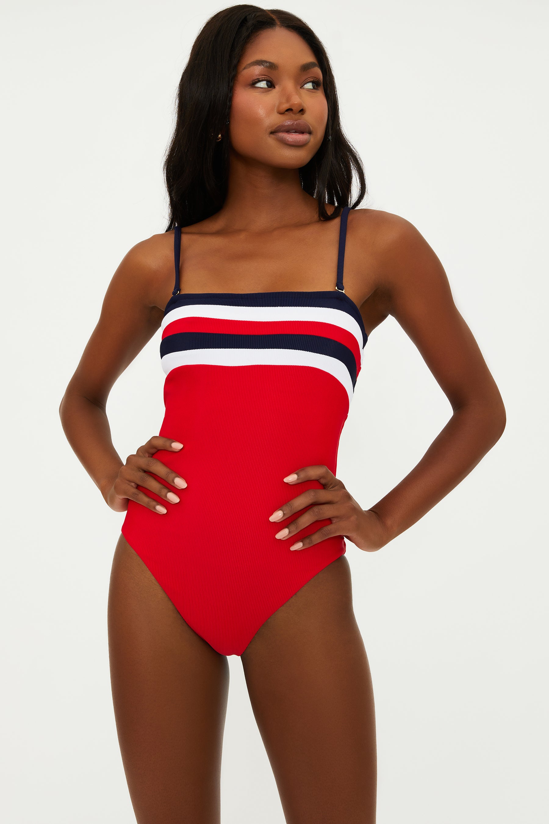 Dive into summer fun with the Jessa One Piece, designed in a vibrant American theme that makes a splash wherever you go. Its ribbed fabric adds texture and style, while removable, adjustable straps let you customize your fit. Soft cups offer gentle support and can be removed for comfort. Enjoy moderate coverage that keeps you confident and playful by the water or poolside.