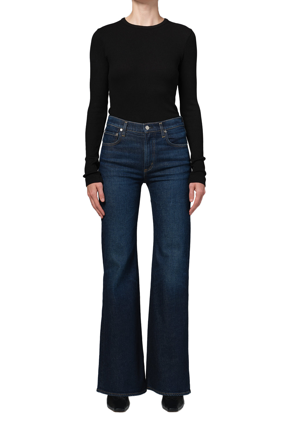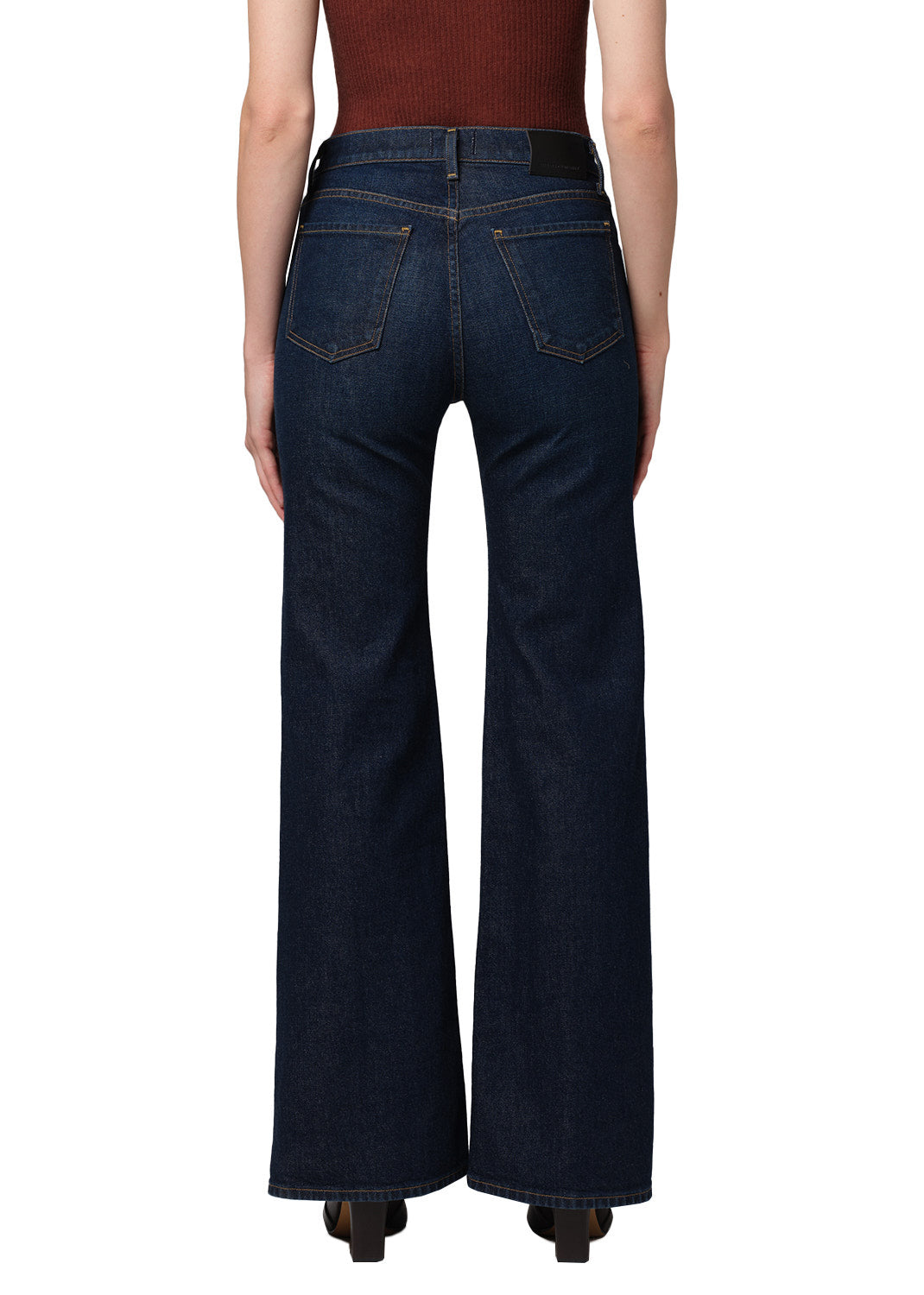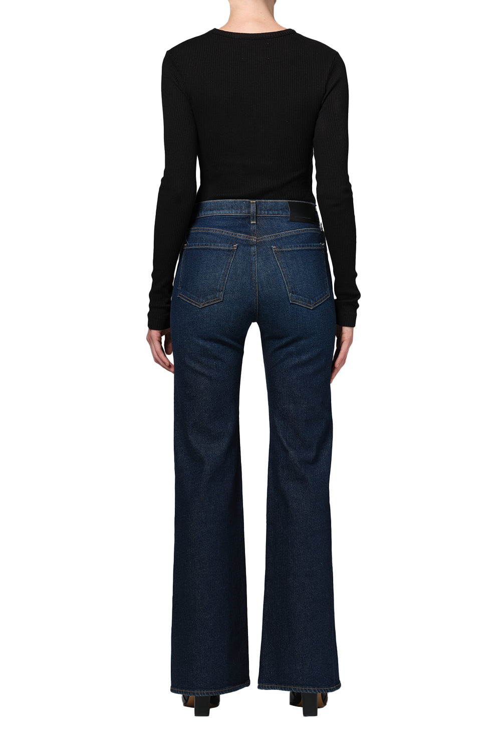 The Kimberly is a high-rise flare inspired by classic '70s silhouettes, designed to elongate the leg and contour the waist. Crafted from comfort stretch denim with a super soft hand, it offers lasting shape and all-day ease. The Madison wash—a dark indigo with soft fading and whiskering—adds a touch of vintage refinement. Style with slim knits or structured shirting for a clean finish.