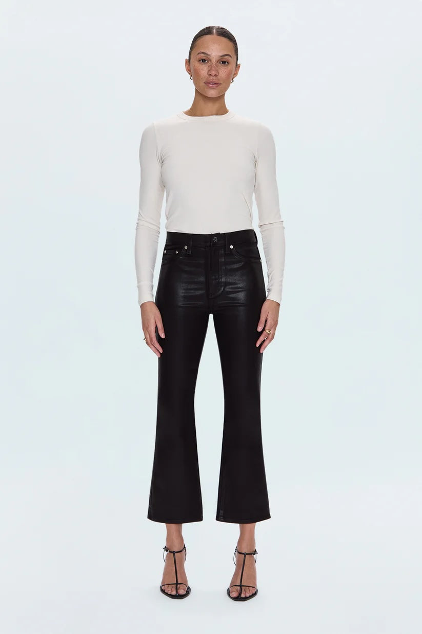 The bootcut you'll reach for again and again. Lennon sits at a high rise with a slim-to-the-body fit that hugs from hips to knee before flaring at the calf for perfect proportional effect. The cropped ankle bootcut creates a flattering silhouette that works with any shoe. Crafted from high stretch fabric in Coated Mocha, a rich brown that's defining this season. The luxurious coated texture elevates every look with sophisticated appeal.