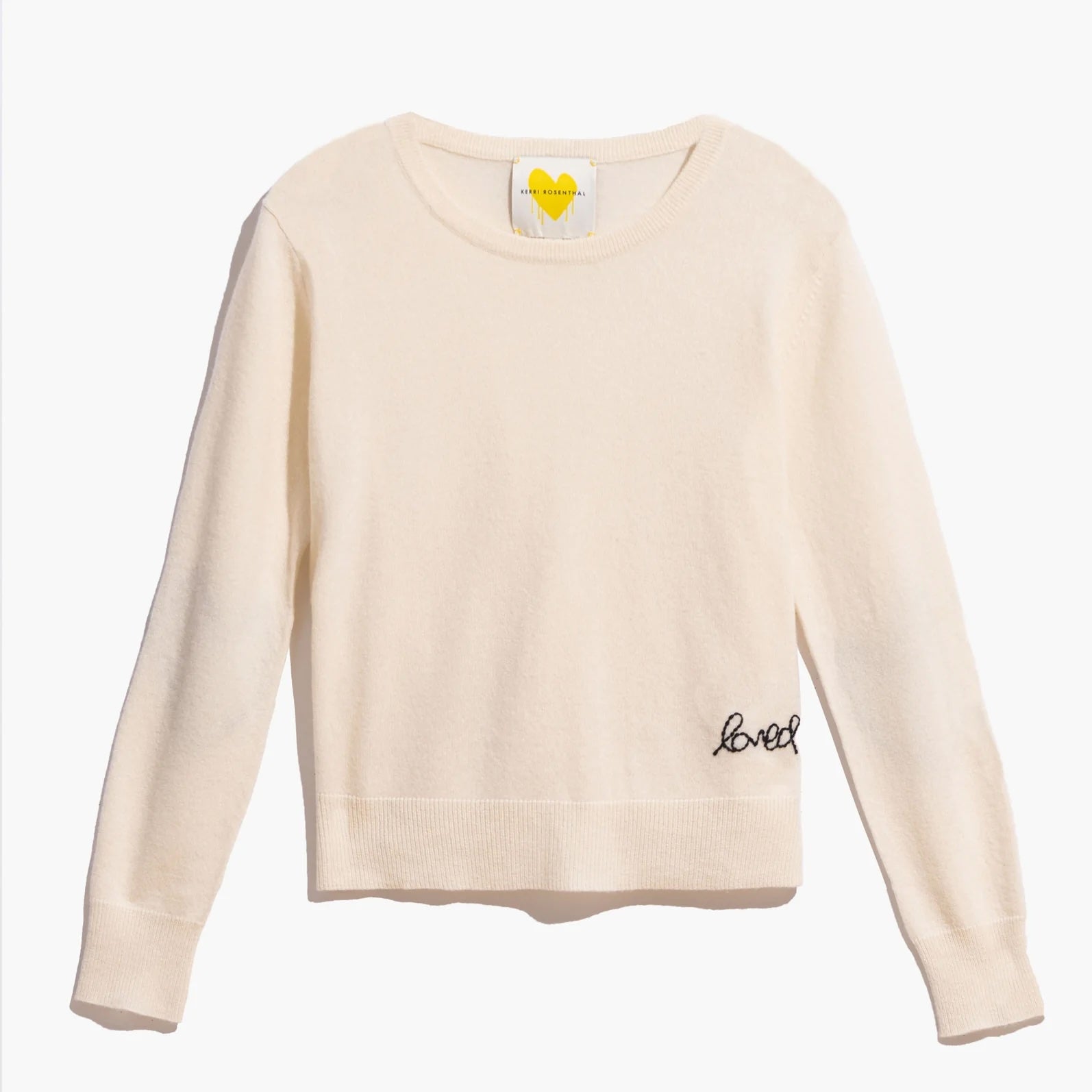 The most love patchwork pullover sweater in lightweight cashmere, updated with a classic finish. Heart elbow patches, and hand stitched loved on the bottom of the cashmere sweater.