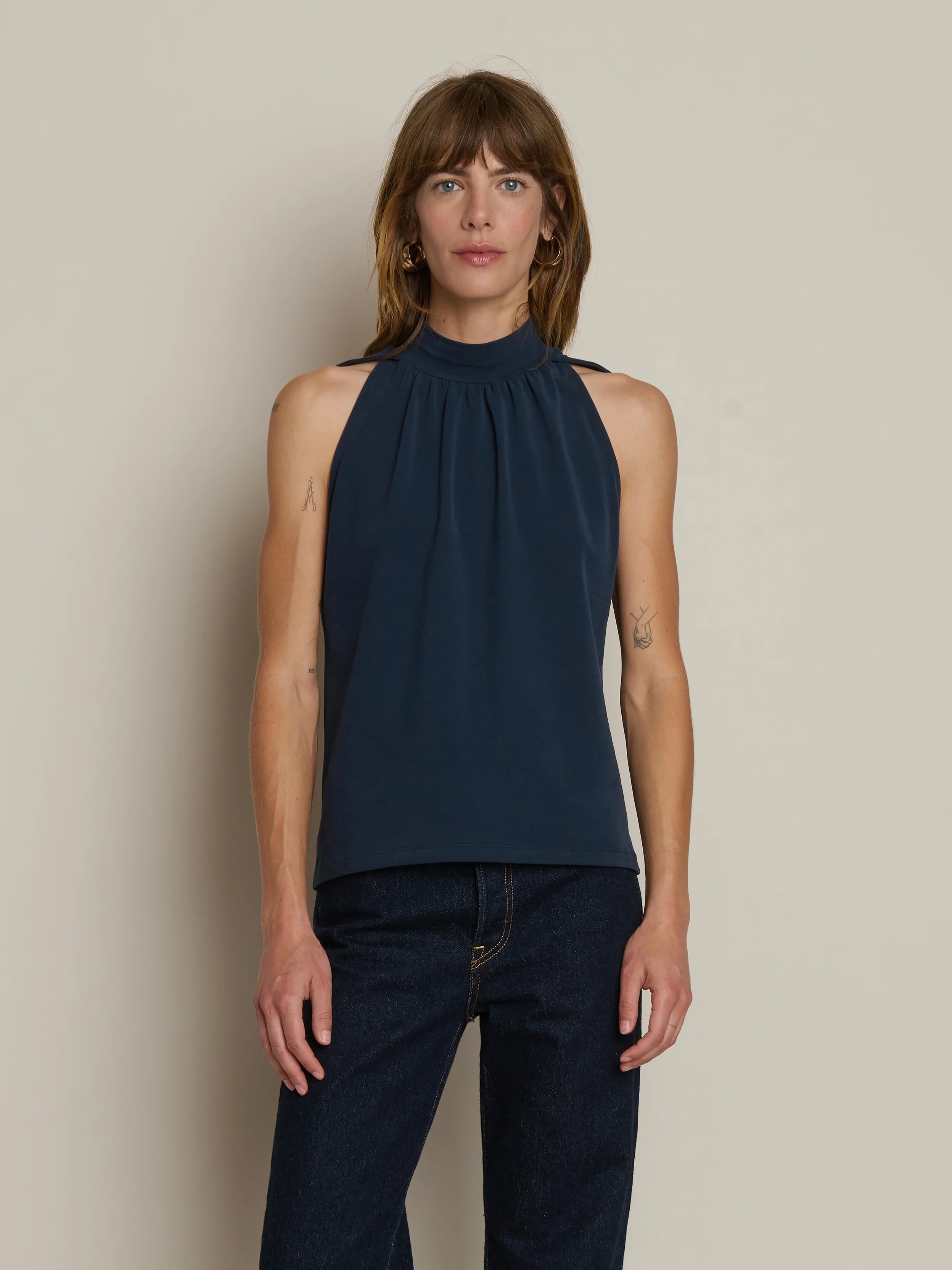 Made for those who lead with style, the Randi Halter Tank is a high-brow halter you’ll want to pair with everything. Made of pima pigment jersey with a hint of stretch, it balances strong lines with a soft edge.