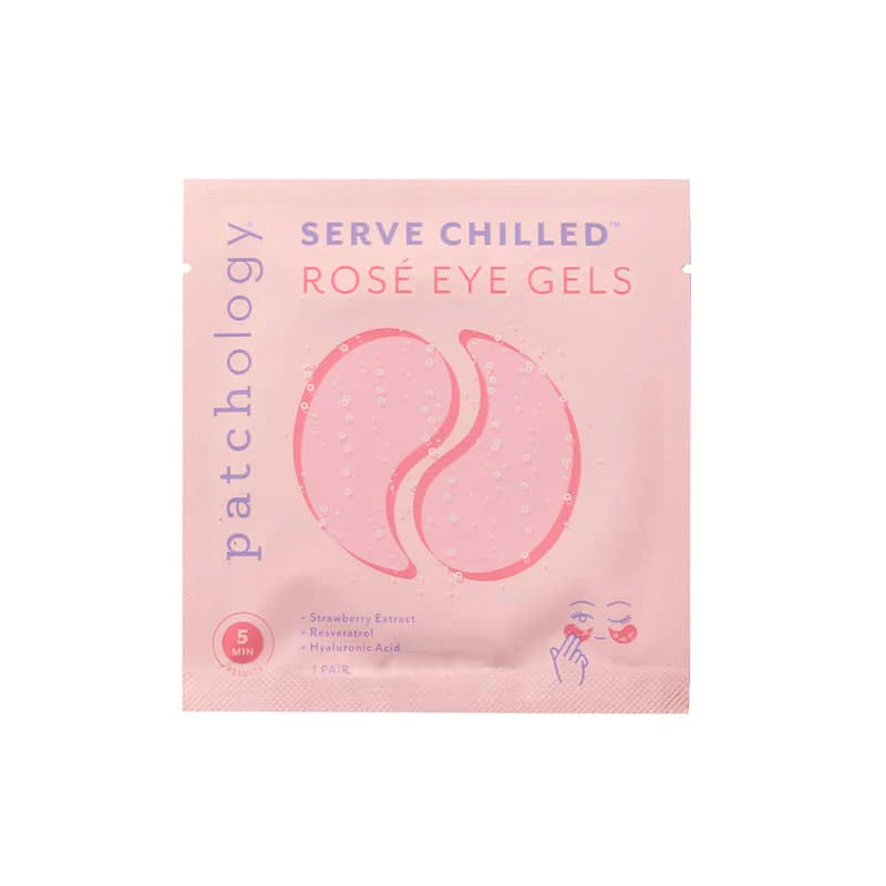 Your skin’s happy hour — and the ultimate pre-makeup patch. Patchology Serve Chilled™ Rosé Hydrogel Eye Patches drench under-eyes in hydration and antioxidants, leaving them smooth, bright, and perfectly prepped in just 5 minutes. Powered by resveratrol (an antioxidant from grapes), hyaluronic acid, and strawberry extract, these pink gels protect against environmental stressors while plumping and softening for a refreshed, radiant look. With HydraSurge5™ Complex, ingredients absorb quickly so your concealer glides on smoothly and stays flawless.