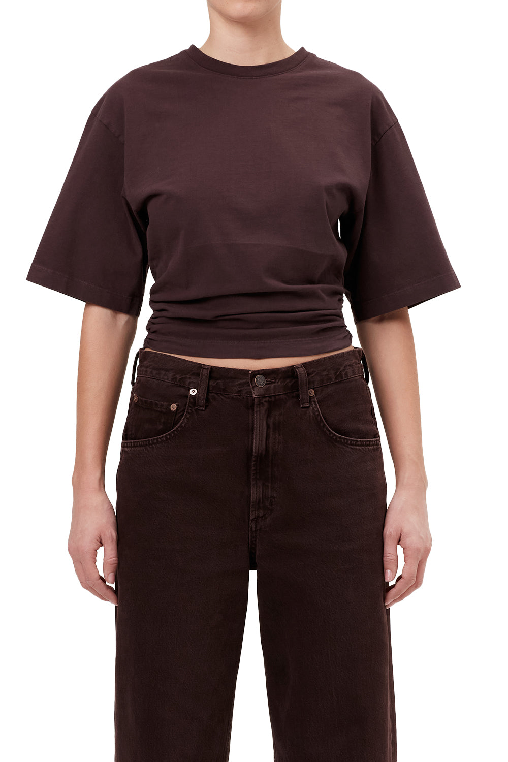 A fresh take on the classic tee. The Shari is cut from lightweight cotton jersey with exaggerated short sleeves and a slightly cropped fit.