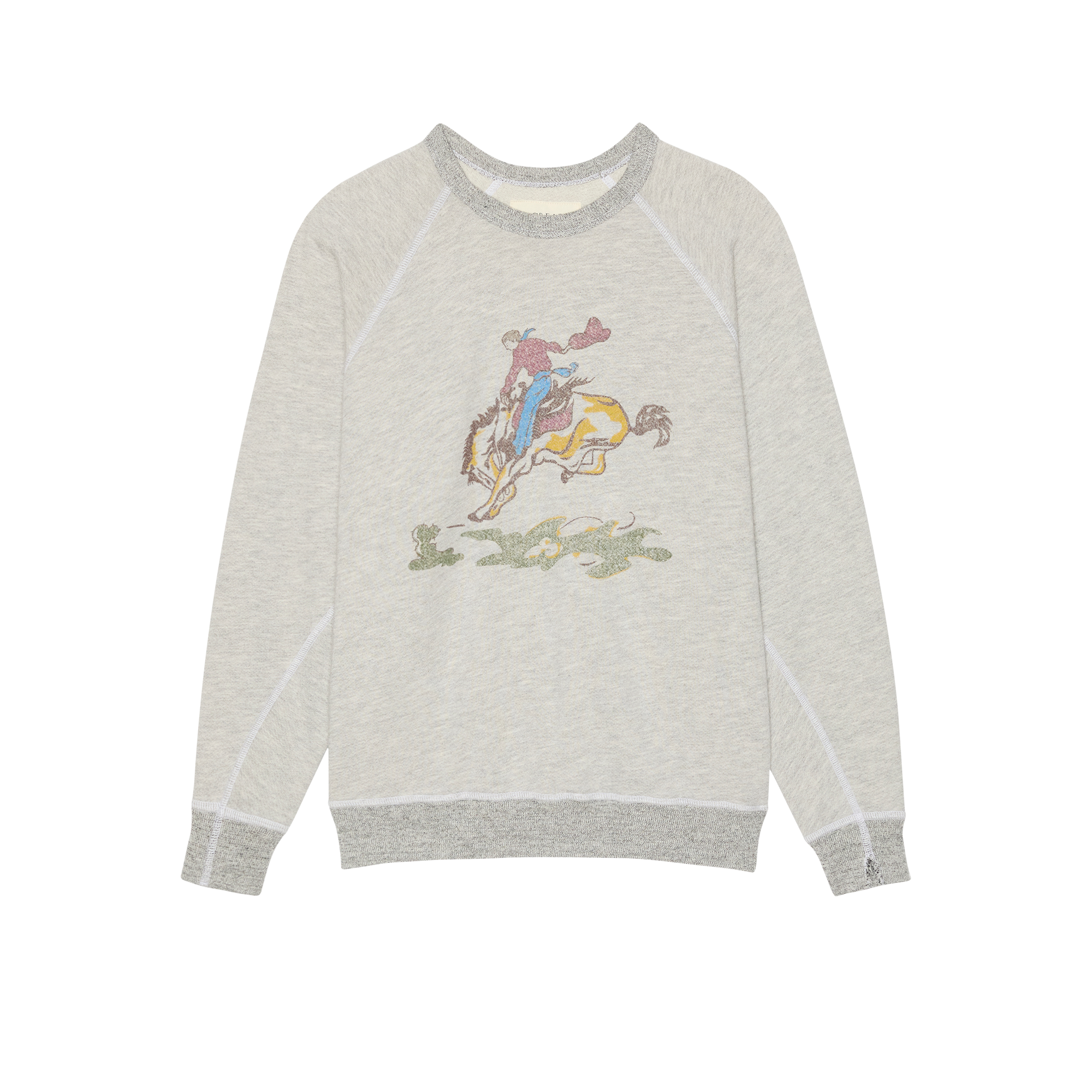 Saddle up for comfort in this playful college sweatshirt featuring a bold rider graphic. Perfect for equestrian enthusiasts and casual style lovers alike, this cozy layer brings a touch of adventure to your everyday wardrobe. Whether you're channeling your inner cowboy or just love the aesthetic, this sweatshirt delivers both warmth and personality. Throw it on for a relaxed vibe that stands out from the crowd.