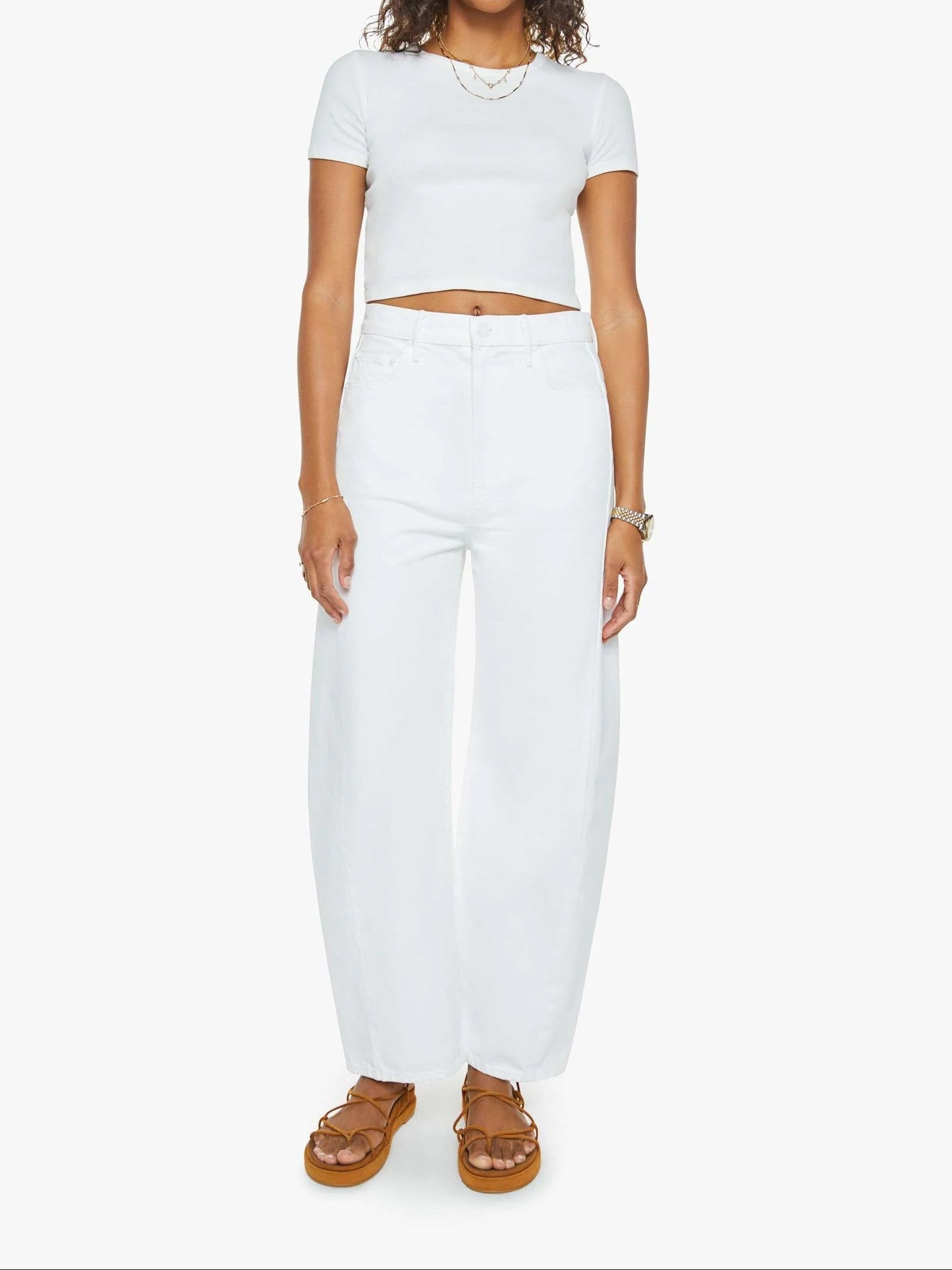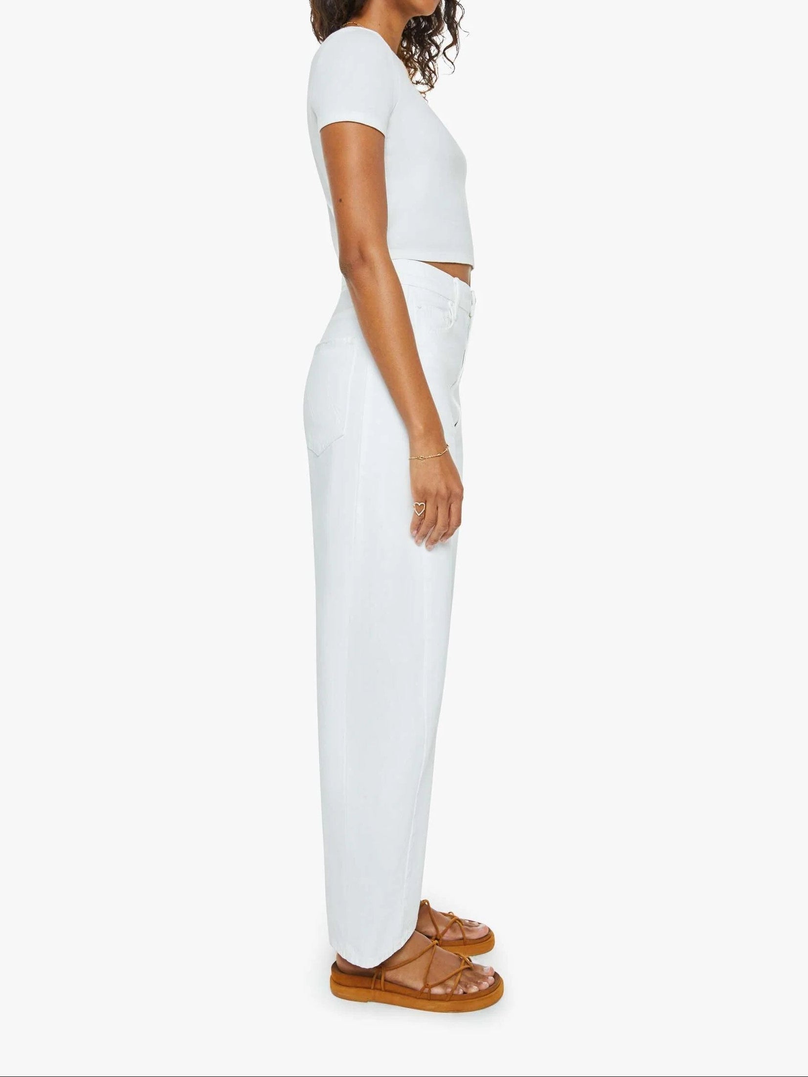 High Waisted with a wide, barrel leg, an ankle-length inseam and a clean hem. Part of Mothers SUPERIOR denim, super soft to the touch. Picket Fence is a bright white with tonal hardware. Made in Los Angeles utilizing fine imported materials.