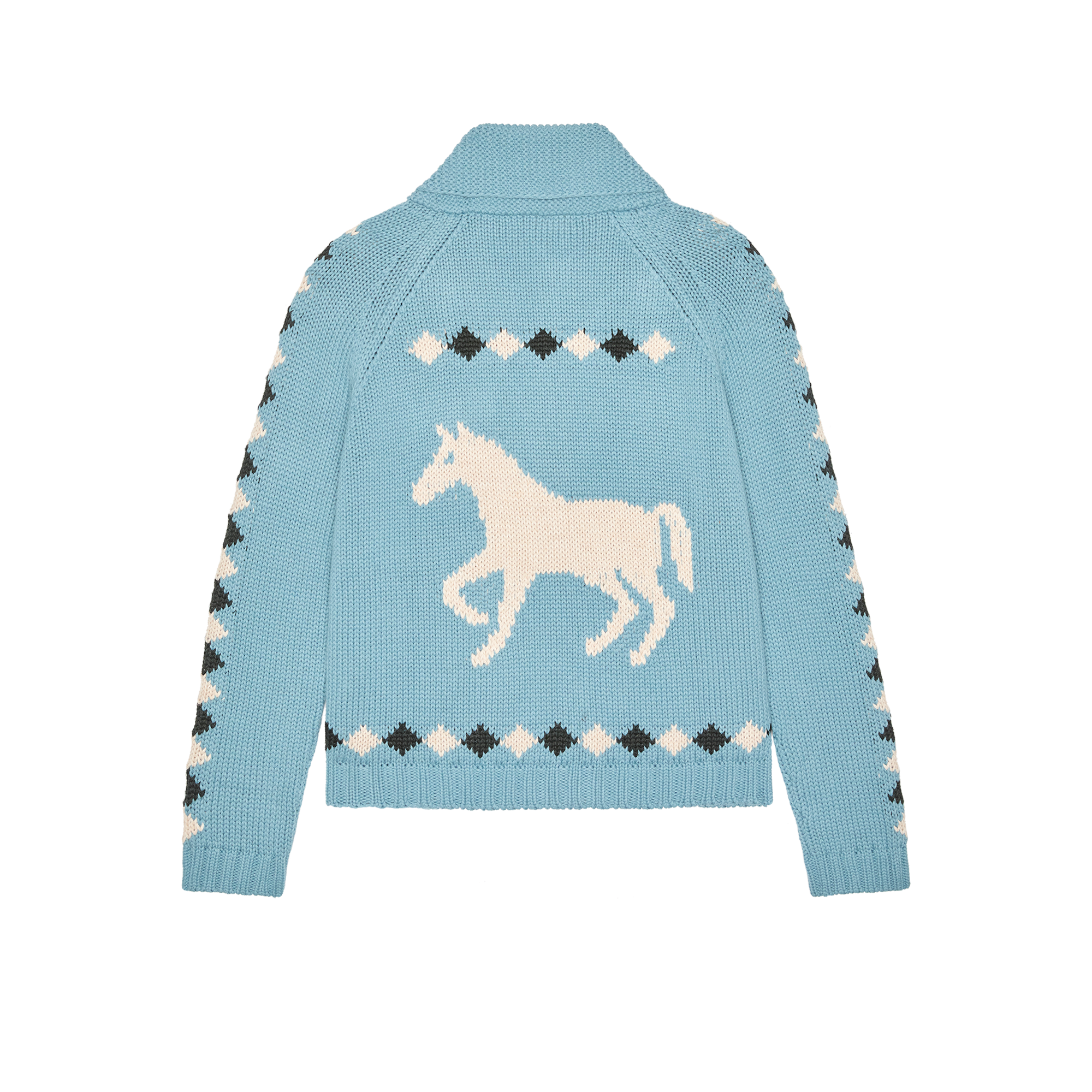 Saddle up in style with The Stable Lodge Cardigan, a charming bluebell-hued knit featuring horses across the front and back. Perfect for equestrian enthusiasts and animal lovers alike, this playful piece brings a touch of ranch-inspired whimsy to your everyday wardrobe. Layer it over your favorite tee for a cozy, conversation-starting look that celebrates your love of all things horsey.