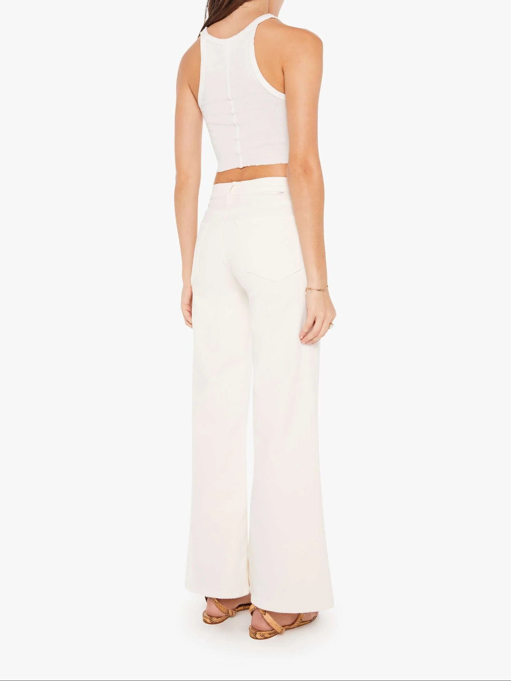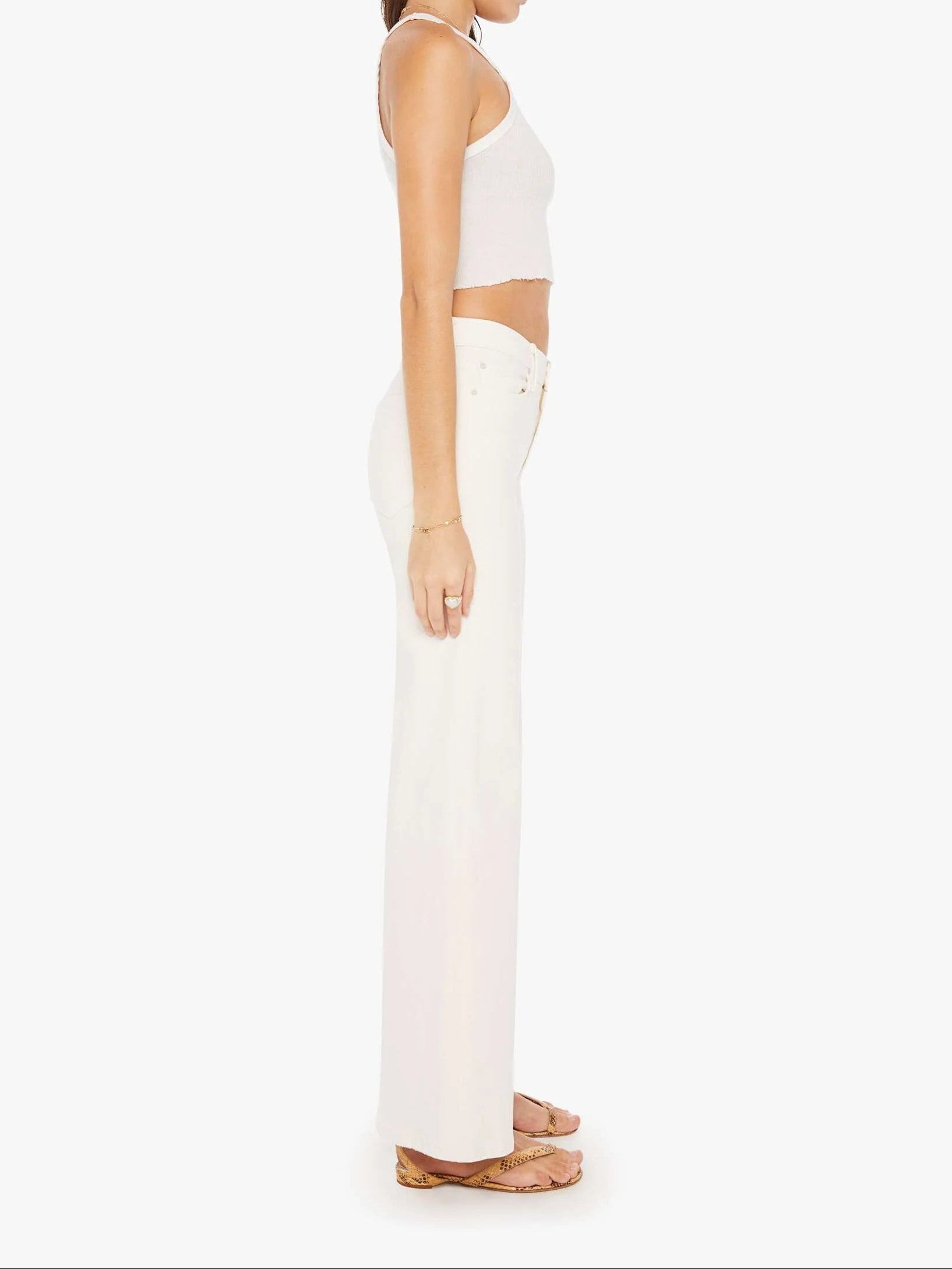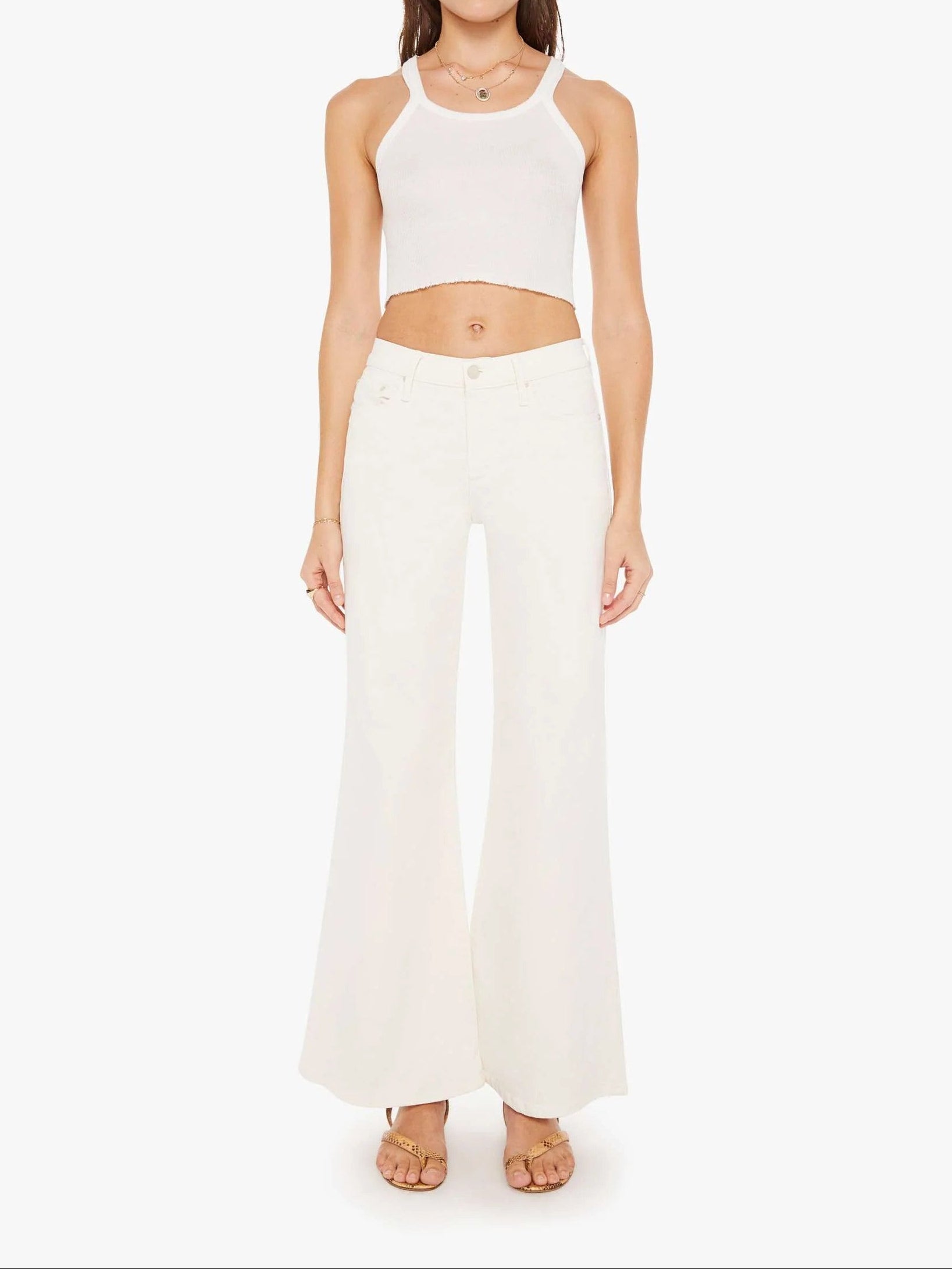 Puff piece. High-rise pants with a flared, wide leg and 31-inch inseam with a clean hem. Cut from comfortable stretch fabric, Cream Puffs is an off-white color with tonal hardware. Made in Los Angeles.