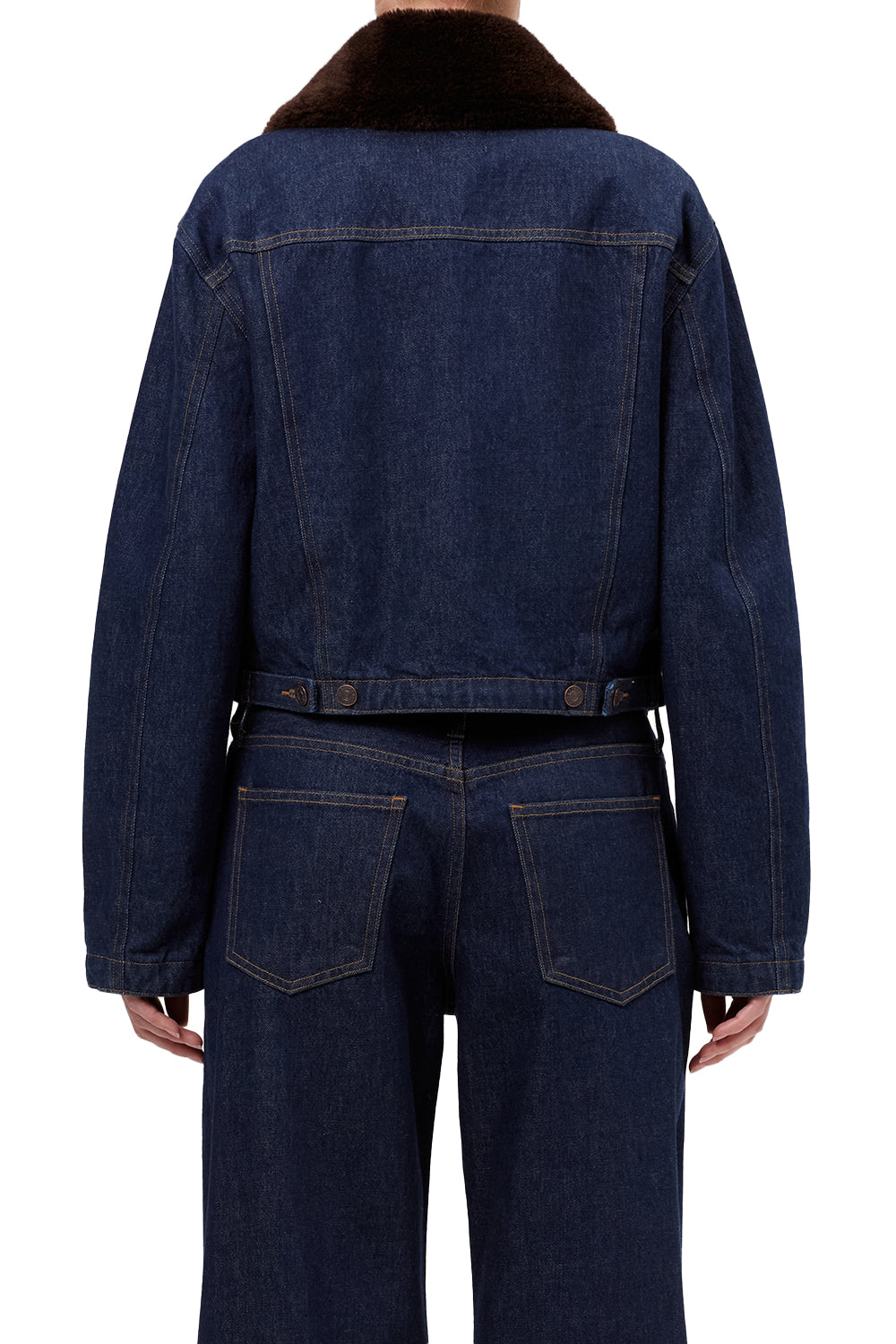 A refined update to a timeless staple, the Walker Jacket features a cropped silhouette in a clean dark rinse with a removable faux fur collar for seasonal versatility. Style it with tonal denim for a polished, everyday uniform.